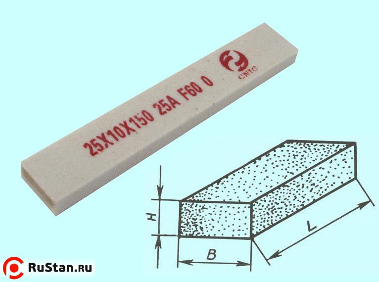 20х10х150 (BxHxL,мм) - ширина, высота и длина бруска, 25А - марка шлифовального материала, СТ1 - твердость.