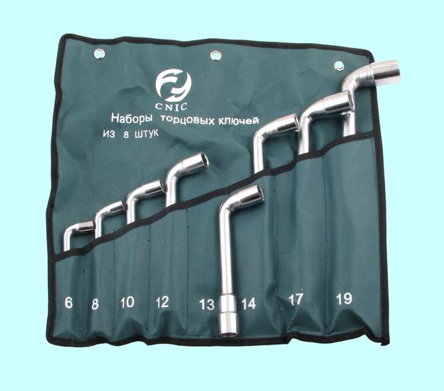 Набор ключей Торцевых коленчатых 2-х сторонних из 8-ми шт. 6-19мм хром, в сумке "CNIC"