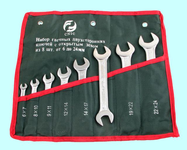 Набор ключей Рожковых из 8-ми шт. (6х7 - 22х24) покрытие хром (TS-001) в сумке "CNIC"