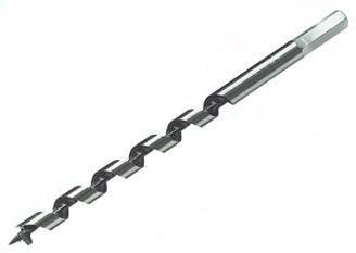 Изготовлено из углеродистой стали с твердостью режущей части 40 HRС. Сверло имеет центрирующее остриё со спиральной нарезкой, уменьшающей осевую нагрузку, и острую подрезную кромку, которая позволяет с высокой точностью просверлить отверстие с гладкими поверхностями, предотвращая смещение сверла и исключая необходимость в предварительном засверливании. Шестигранный хвостовик обеспечивает надежное удержание сверла в патроне.