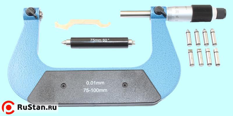 Микрометр Резьбовой со вставками МВМ-100, 75-100 мм (4 пары вставок) "TLX"