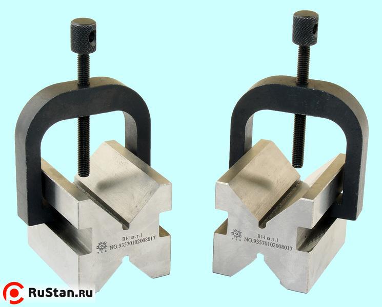 Изготовлены по Китайскому стандарту JB/T8047-95 с двумя призматическими выемками и скобой для фиксации заготовки. Предельные отклонения от параллельности и перпендикулярности + - 0,01мм. Фиксация детали осуществляется при помощи скобы с центральным винтом. Диаметр поверяемой детали от 3 до 30мм. Технический паспорт