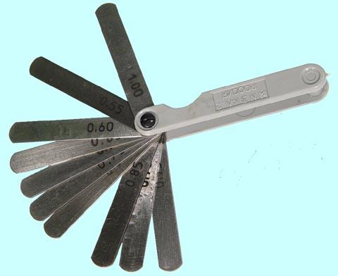 Предназначены для проверки величины зазоров между поверхностями. Обоймы имеют никелевое антикоррозионное покрытие. Длина щупов -70 мм. Номинальная толщина щупов, мм - 0,02; 0,03; 0,04; 0,05; 0,06; 0,07; 0,08; 0,09; 0,1; 0,15; 0,2; 0,25; 0,3; 0,4; 0,45; 0,5. Количество щупов в наборе - 17.