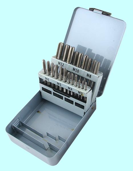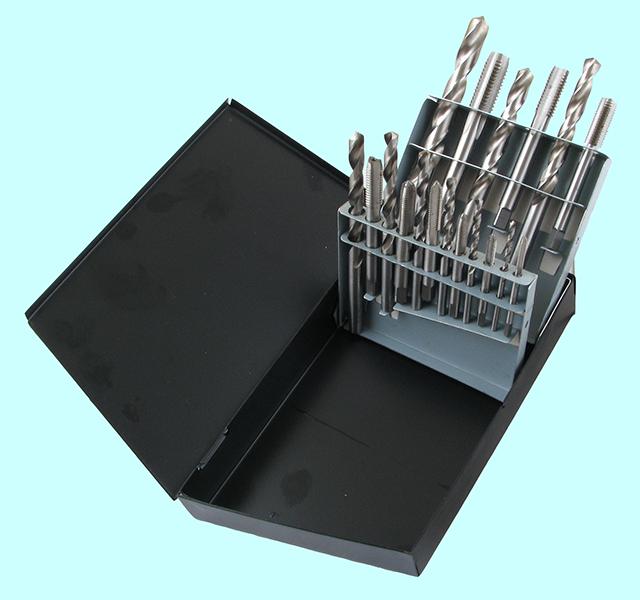 Набор резьбонарезной из 9 метчиков М3-М12 Р18 и 9 сверл d2.5-d10.3 Р18 в мет. коробке "CNIC"