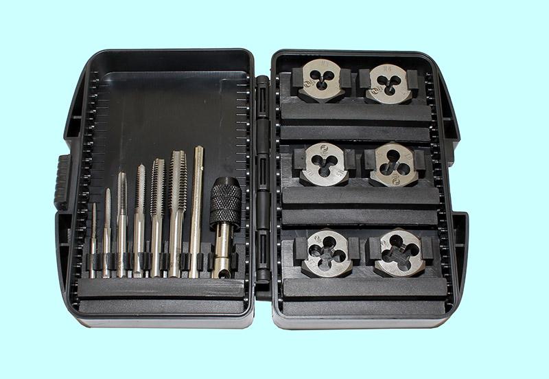 Вороток,плашкодерж-ль и по 6 метчиков и плашек М3-М10 9ХС в метал. футляре (14 поз.) SM014-1 "CNIC"