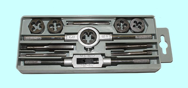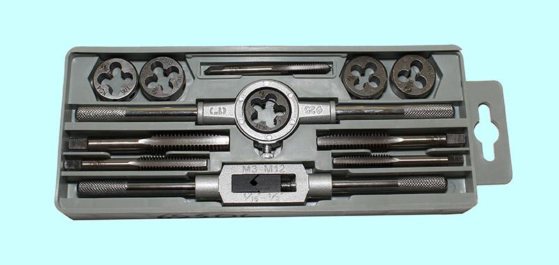Вороток,плашкодерж-ль и по 5 метчиков и плашек М6-М12 9ХС в пласт. футляре (12 поз.) SP012-2 "CNIC"