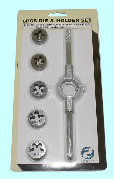 Набор из 5 штук плашек М6-М12 9ХС + плашкодержатель в блистере (6 позиций) SC006-1 "CNIC"