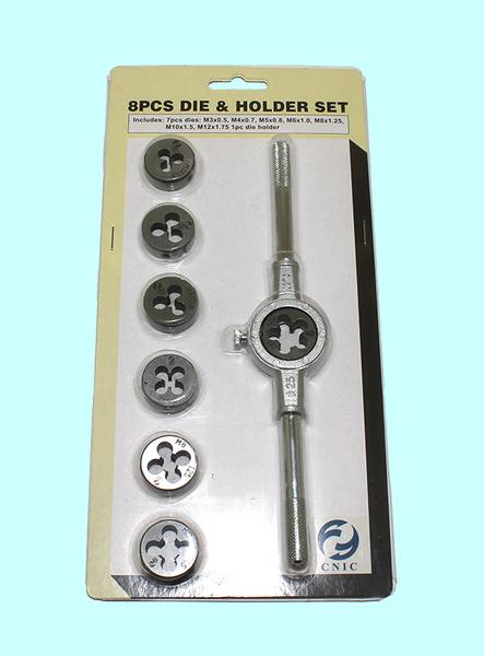 Набор из 7 штук плашек М3-М12 9ХС + плашкодержатель в блистере (8 позиций) SC008-1 "CNIC"