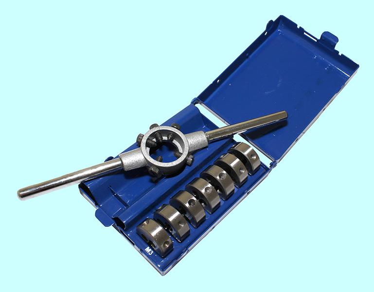 Набор из 7 штук плашек М3-М12 9ХС + плашкодержатель в метал. футляре (8 позиций) SM008-1 "CNIC"
