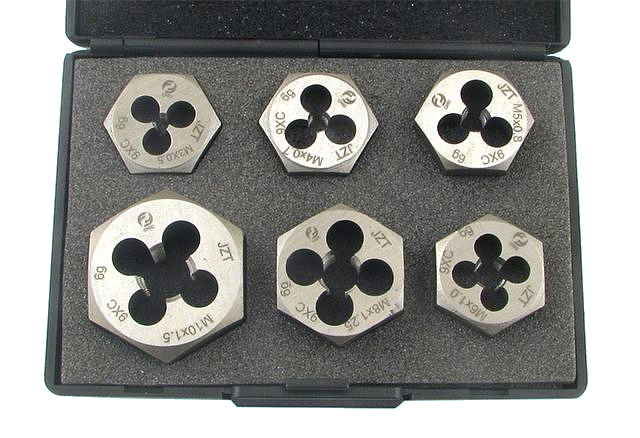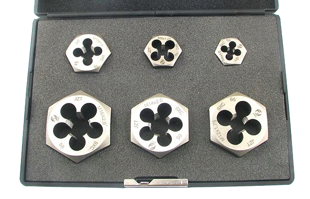 Набор плашек шестигранных из 6-ти штук М 3-М10 9ХС DIN382 в дер. коробке "CNIC"