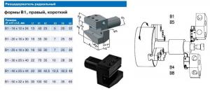 Резцедержатель радиальный правый короткий (тип В1) с хвостовиком VDI 3425 по DIN 69880 (ГОСТ 24900-81). Применяется для токарной обработки на станках с числовым програмным управлением (ЧПУ).