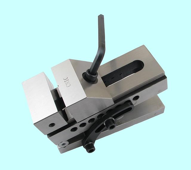 Тиски станочные, модель TLT/SP-100 представляют собой универсальную сменную оснастку, используемую при выполнении широкого спектра фрезерных и сверлильных работ на универсальных фрезерно-сверлильных станках. Приспособление выполнено из прочного, литейного чугуна, обеспечивающего изделию продолжительную эксплуатацию. Тиски имеют устойчивое основание, общий вес оснастки составляет 20,5 кг. Эта модель имеет рабочий ход 100 мм., специальное приспособление и поворотный механизм, позволяющие с высокой точностью осуществлять позиционирование заготовок в удобном для работы положении. Ширина прижимных губок составляет 100 мм, высота 38 мм, создавая широкую прижимную поверхность приспособления.