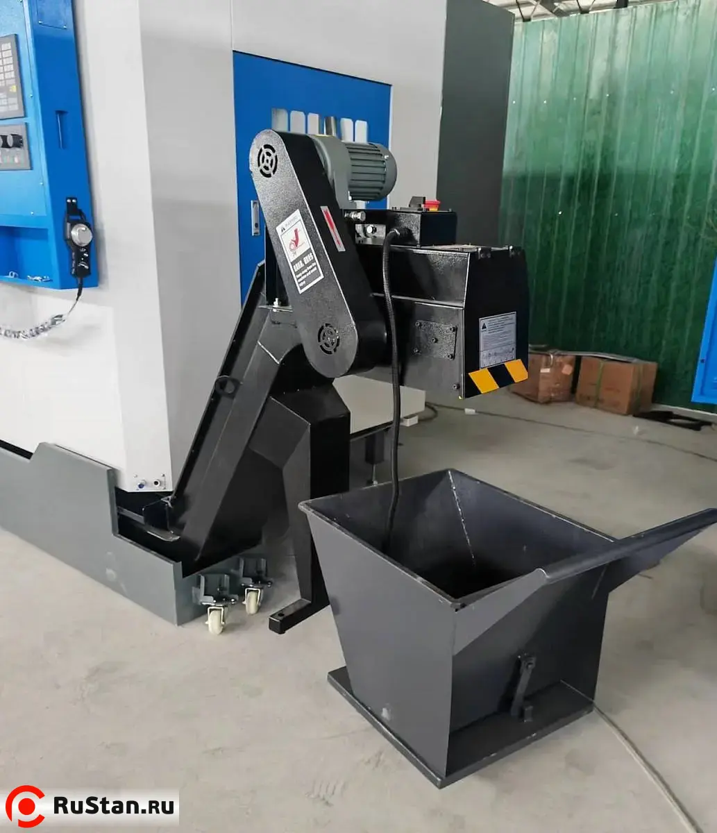 Удаляет стружку из станка и выпускает ее в идущую в комплекте тележку с минимальным выводом СОЖ.