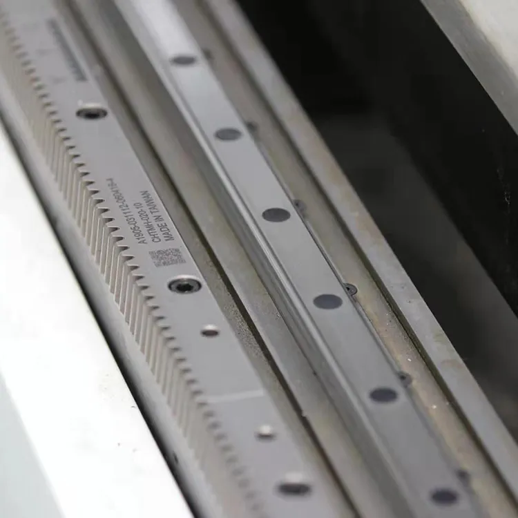 Для перемещения по осям Х и Y на станке используется шестерня и косозубая рейка. Это решение позволяет добиться высоких скоростных показателей без потери точности обработки.