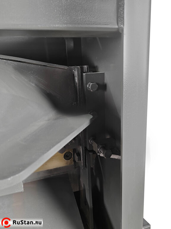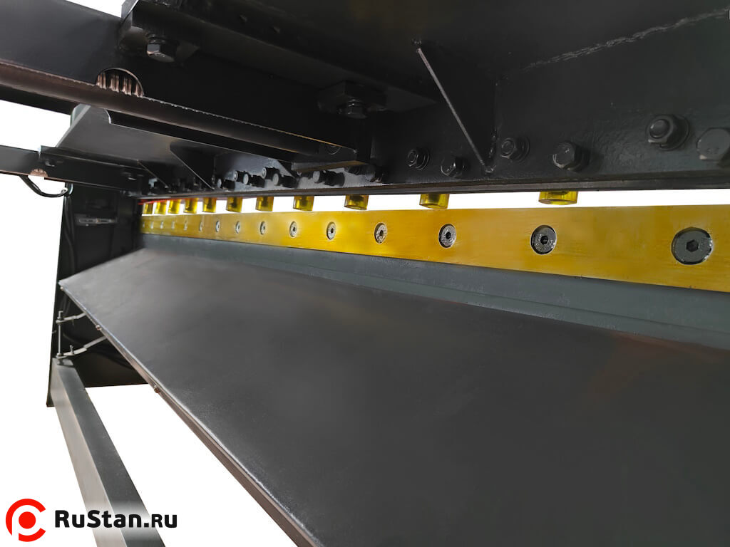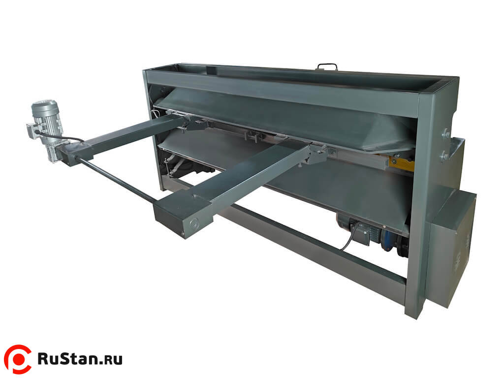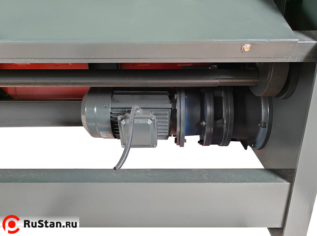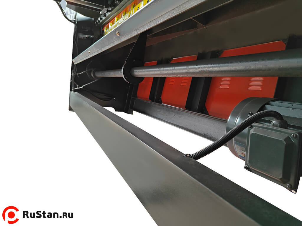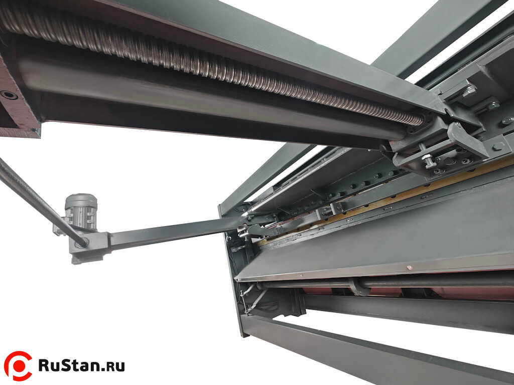 - Приводной вал расположен под рабочим столом гильотины. Это обеспечивает компактную конструкцию и плавную работу станка.
