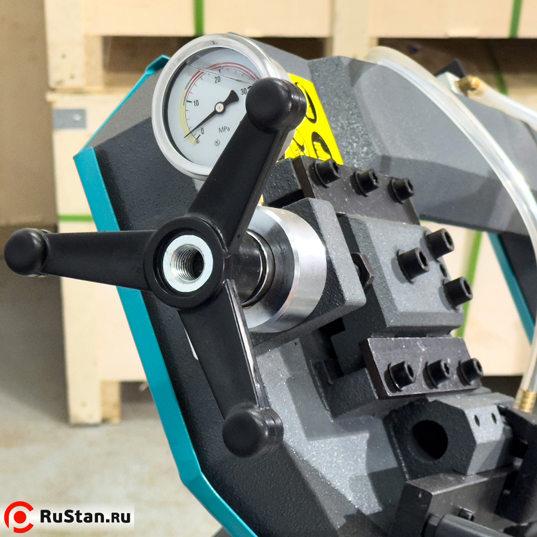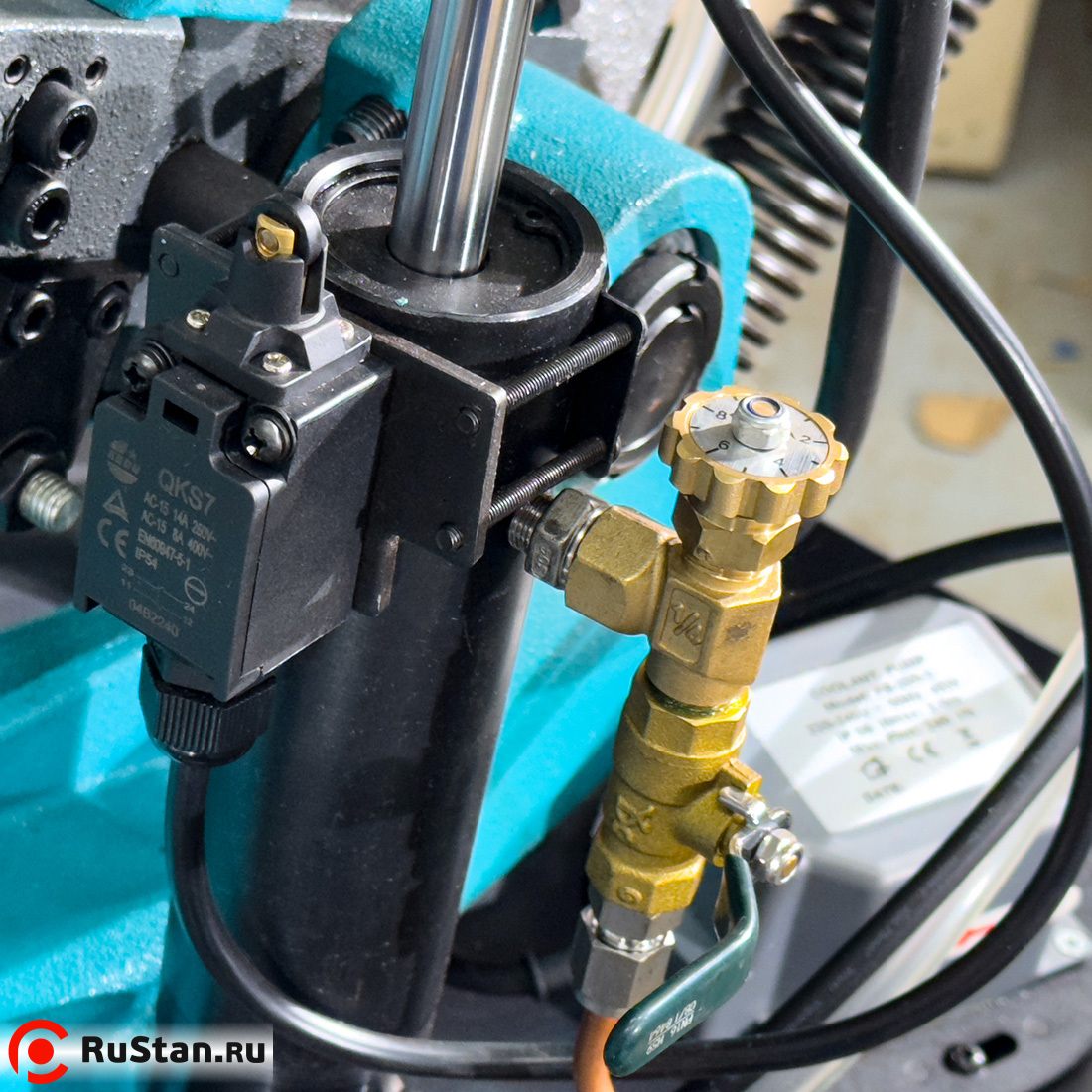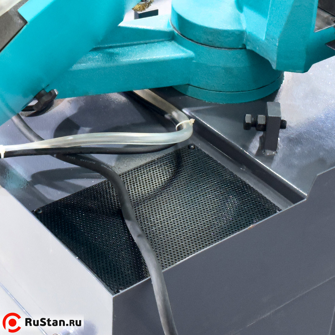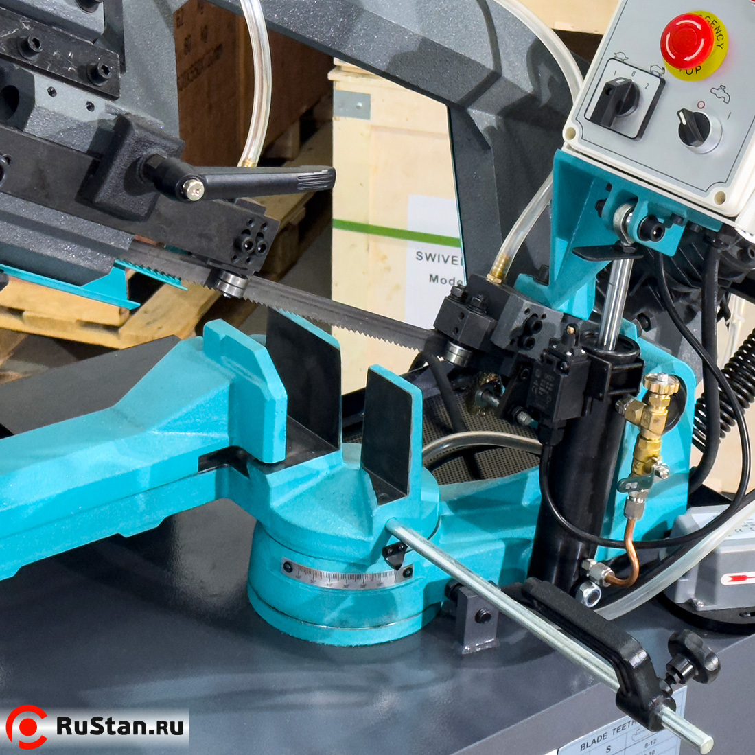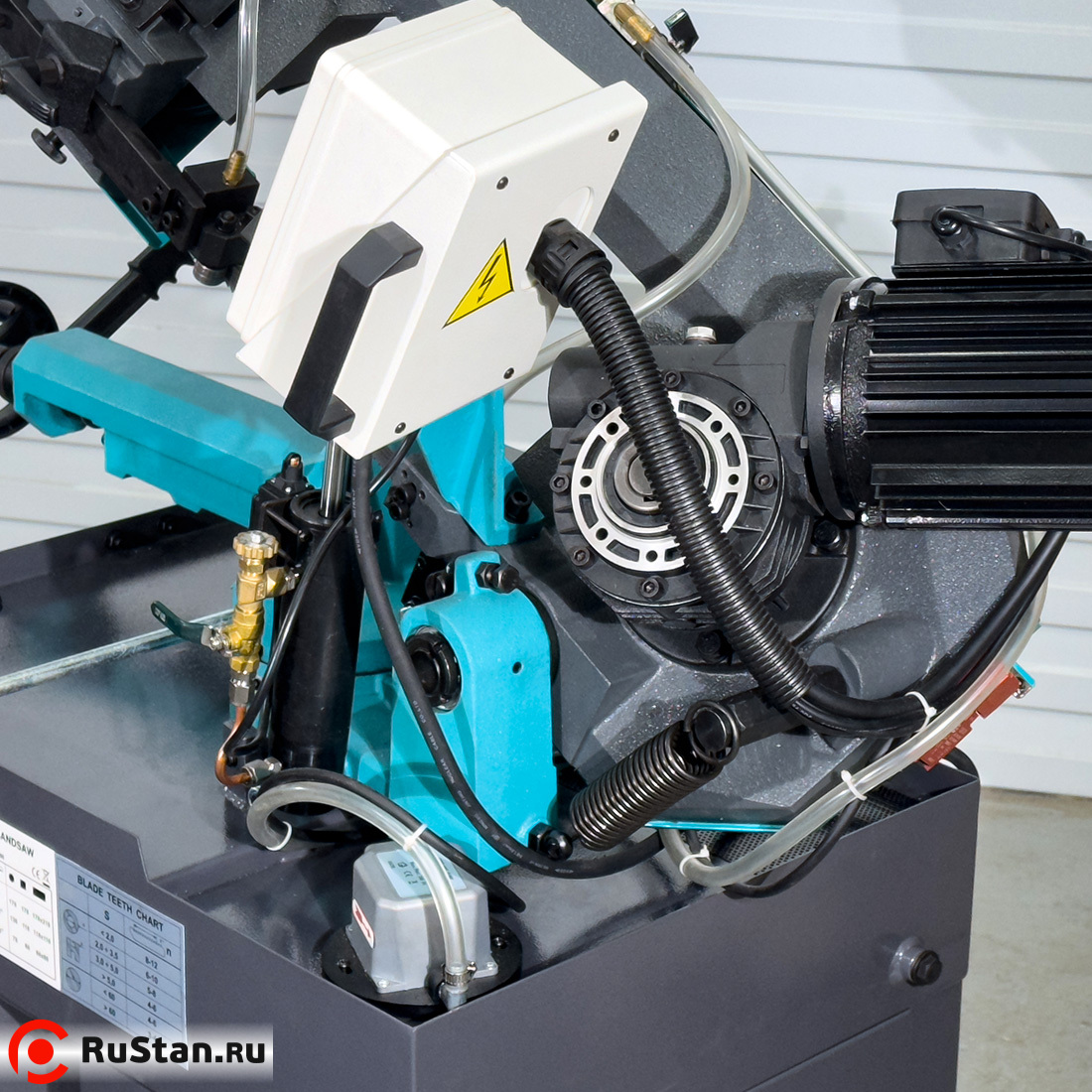Пильная лента приводится в действие двухдиапазонным трёхфазным мотор-редуктором. Правильность натяжения ленточного полотна легко контролируется с помощью установленного тензометра. Напряжение питания станка 380 В. Скорость опускания пильной рамы можно регулировать гидроцилиндром. Модель оснащена системой подачи в зону резания смазочно-охлаждающей жидкости (СОЖ). Данное оборудование используется на мелкосерийном и серийном производстве.