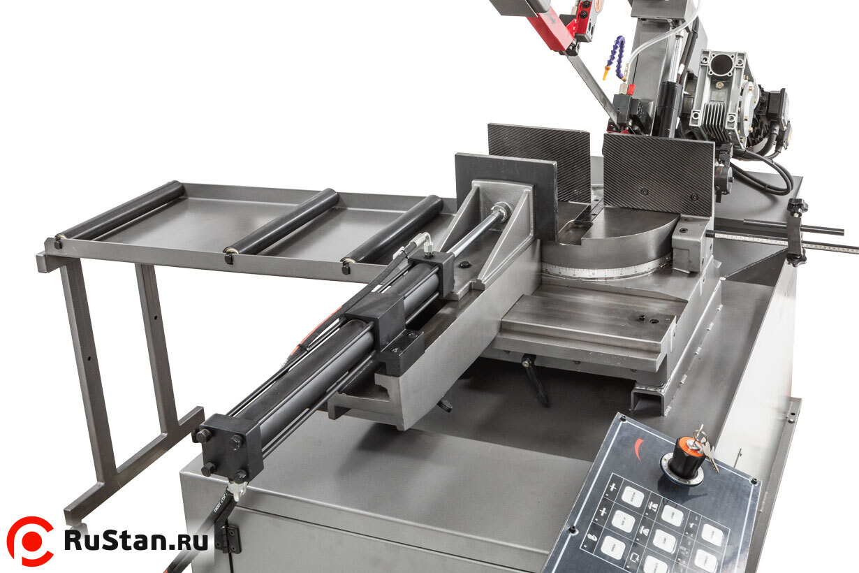 Плавная регулировка скорости движения полотна в диапазоне от 9 до 93 м/мин, позволяет подобрать нужный режим резания и повысить качество производимой детали. Инверторное управление двигателем позволяет поддерживать постоянную скорость движения полотна при изменении нагрузки.