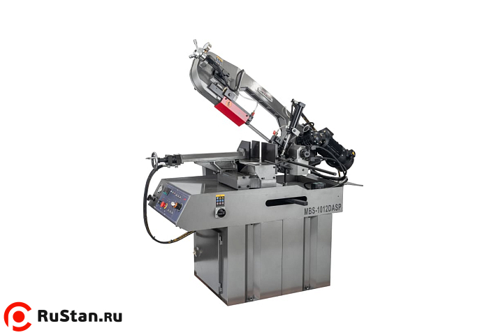 Модель MBS-1012DASP имеет регулируемую направляющую для регулировки прохода ленточного полотна в зависимости от формы заготовки и ее диаметра. Направляющие блоки осуществляют позиционирование полотна непосредственно под прямым углом к поверхности обрабатываемой заготовки. Максимальная стойкость ленточного полотна обеспечивается подачей СОЖ в зону резания.