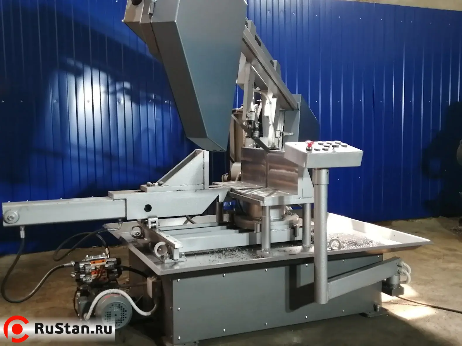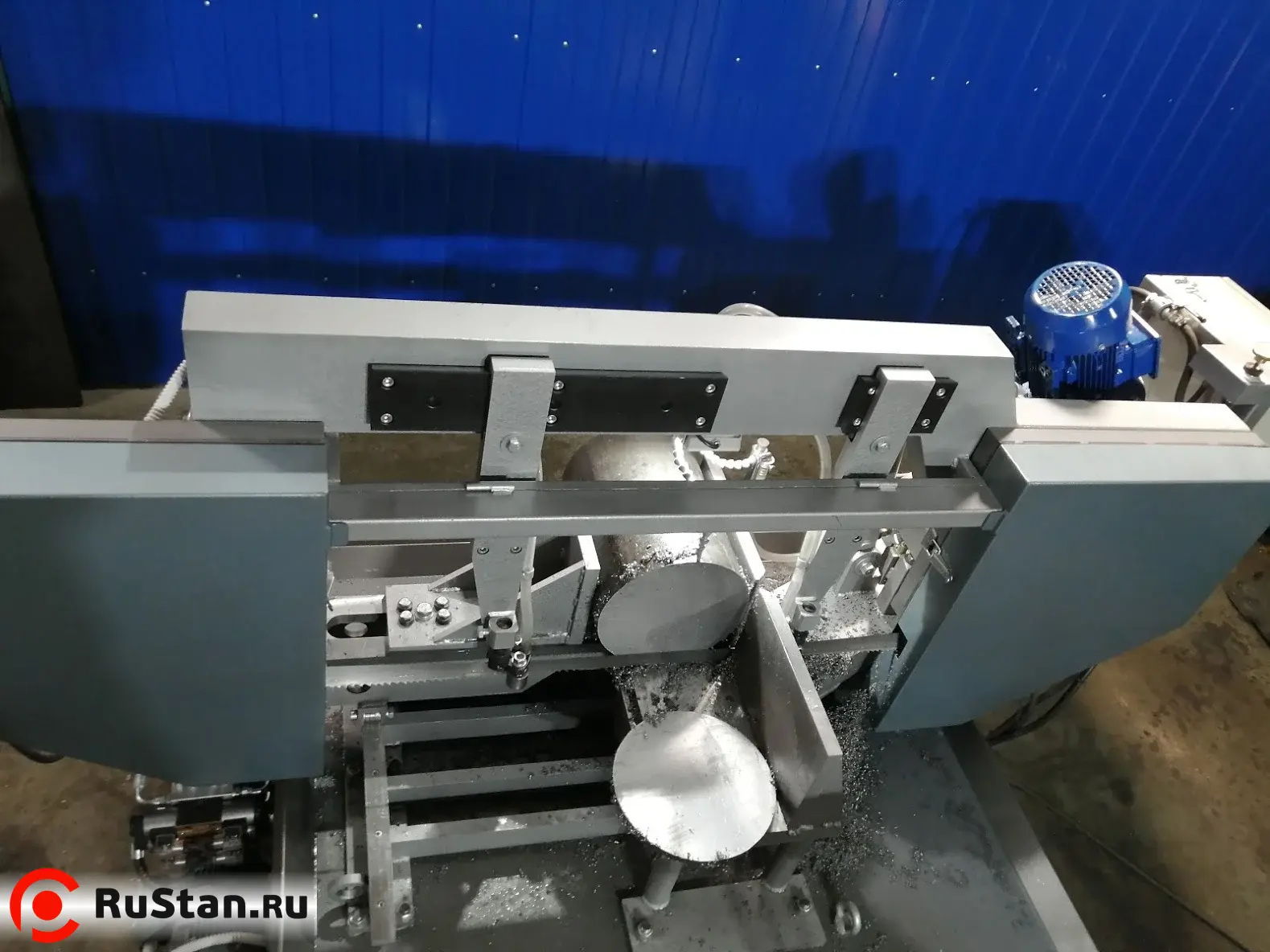 Резка осуществляется под углами 90±45 ° и проходит в полуавтоматическом режиме. Ленточнопильные станки имеют мощную станину, оснащены ручным гидронасосом для подъема и опускания пильной рамы а также оборудованы механическими тисками.