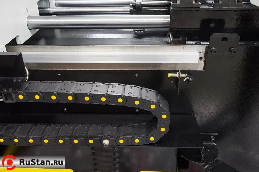 - Длина подачи заготовки контролируется автоматически c ЧПУ (CNC), движение происходит по линейным направляющим
