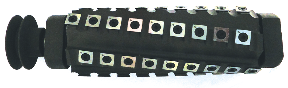 Ножи фуговального станка устанавливаются и регулируются при помощи специального зажимного приспособления, так что все три ножа могут одновременно строгать для получения гладкого среза.