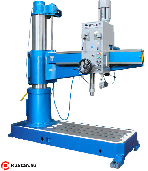 Cтанок радиально-сверлильный 2К550В предназначен для широкого применения в промышленности. Благодаря техническим возможностям станка, он может применяться для обработки отверстий как в ремонтных цехах, так и в цехах крупносерийного производства.
