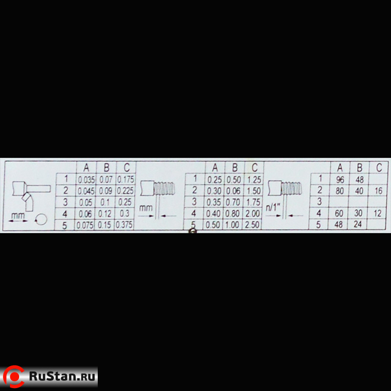 | Диапазон метрической резьбы, мм | 0,25-2,50 /15ст шаг 0,05мм |