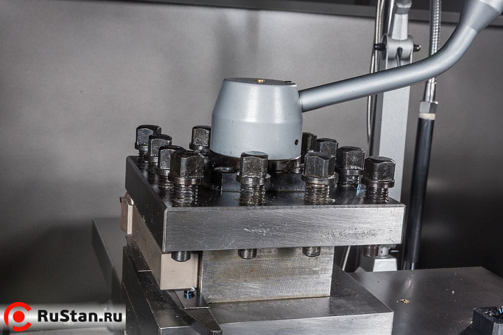 Пониженная скорость 9 об/мин выставляется при необходимости нарезания резьбы плашкой. На станке предустановлены 80 режимов продольных и поперечных подач, что позволяет нарезать метрическую, дюймовую, модульную и питчевую резьбы с повышенным уровнем точности. При этом биение на шпинделе не превышает 9 микрон. Привод шпинделя постоянно находятся в масляной ванне, что способствует охлаждению, снижает уровень шума и продлевает срок эксплуатации станка. Для уменьшения вибраций и качественного теплоотвода от инструмента и шпинделя станок установлен на массивную станину из особопрочного чугуна.