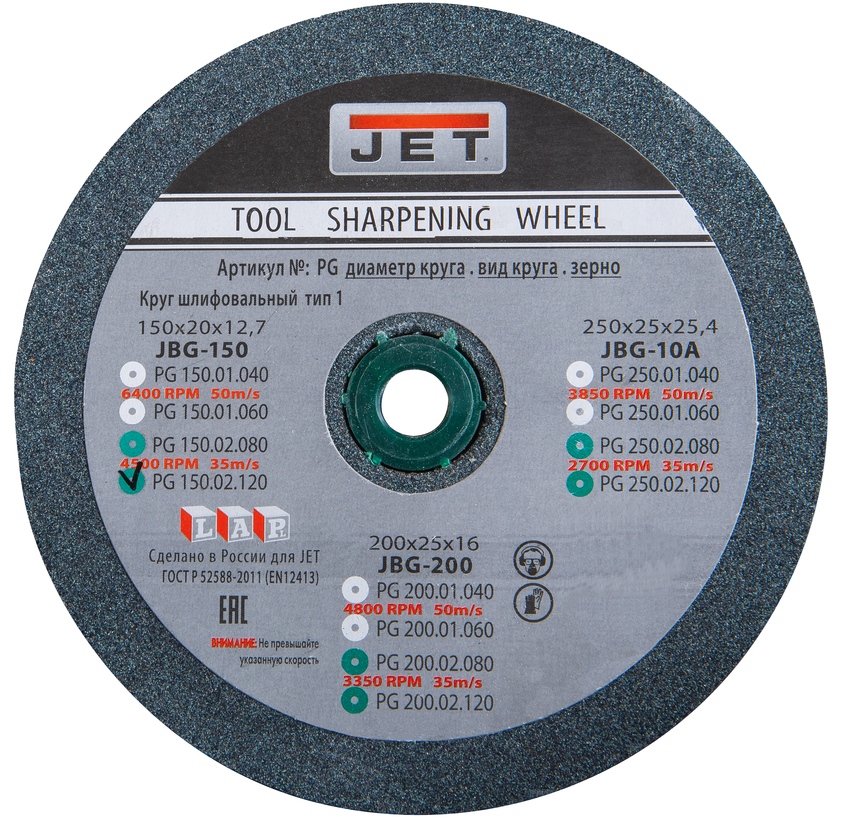 Jet JBG-10A – мощный промышленный заточной станок. Скорость вращения кругов составляет 1450 об/мин - вдвое ниже, чем обычно, что важно для качественной заточки инструмента из углеродистых сталей, подверженных отпуску на режущей кромке. Немаловажное значение при точных работах имеет и массивная конструкция станка, хорошо поглощающая вибрации. Из чугуна выполнены корпус, основание, регулируемые опоры и защитные кожухи, снабженные патрубками для подключения к системе пылеотсоса.