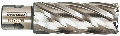 Все кольцевые быстрорезы Rotabroach с хвостовиком Weldon имеют сквозное отверстие под направляющий штифт (пилот), центрирующий сверло и выталкивающий керн (кусок металла, остающийся в полости сверла после работы над отверстием), могут использоваться с большинством сверлильных станков на магнитном основании.